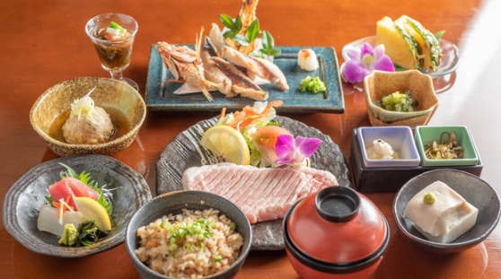 沖縄料理と四季折々の食材で織りなす遊び心ある和食を味わえ、臨場感のある楽しいひとときを堪能できます。
