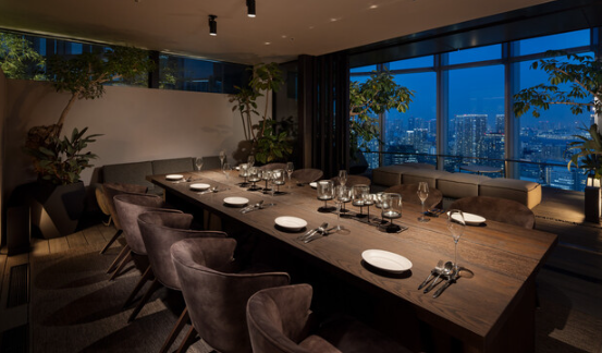 東京の街並みを一望できる高層階で、目の前で焼き上げるライブ感満載の上質鉄板焼きを味わえます。